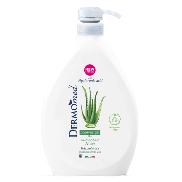 Dermomed Shower Gel Aloe. Fragrant skin. With hyaluronic acid, pH 5.5 and microplastic free. Dermatologically tested.