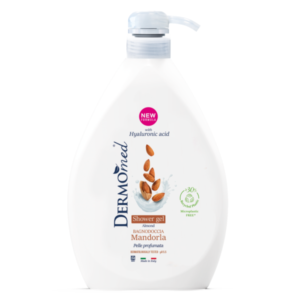 Dermomed Shower Gel Almond. Fragrant skin. With hyaluronic acid, pH 5.5 and microplastic free. Dermatologically tested. -