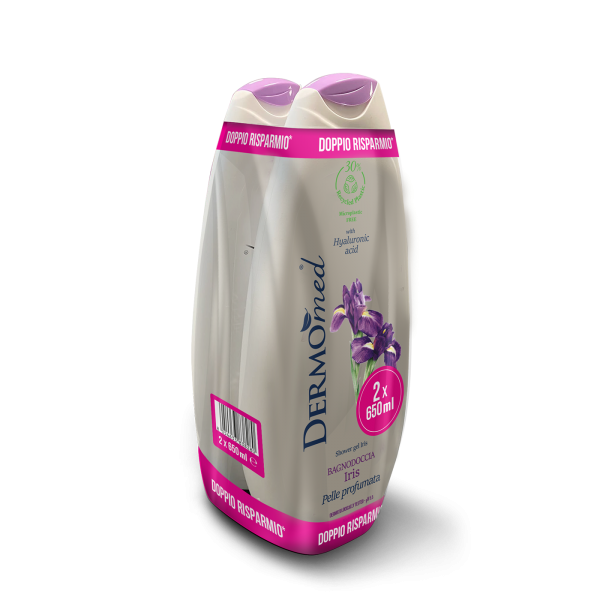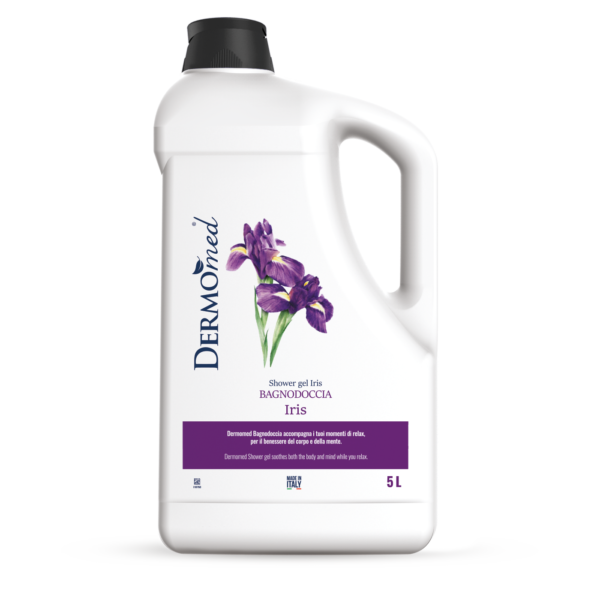 Dermomed Bagnodoccia Iris. Rispetta la pelle, anche quella più delicata, rendendola profumata, morbida e setosa. Con acido ialuronico, pH 5.5 e senza microplastiche. Dermatologicamente testato. -