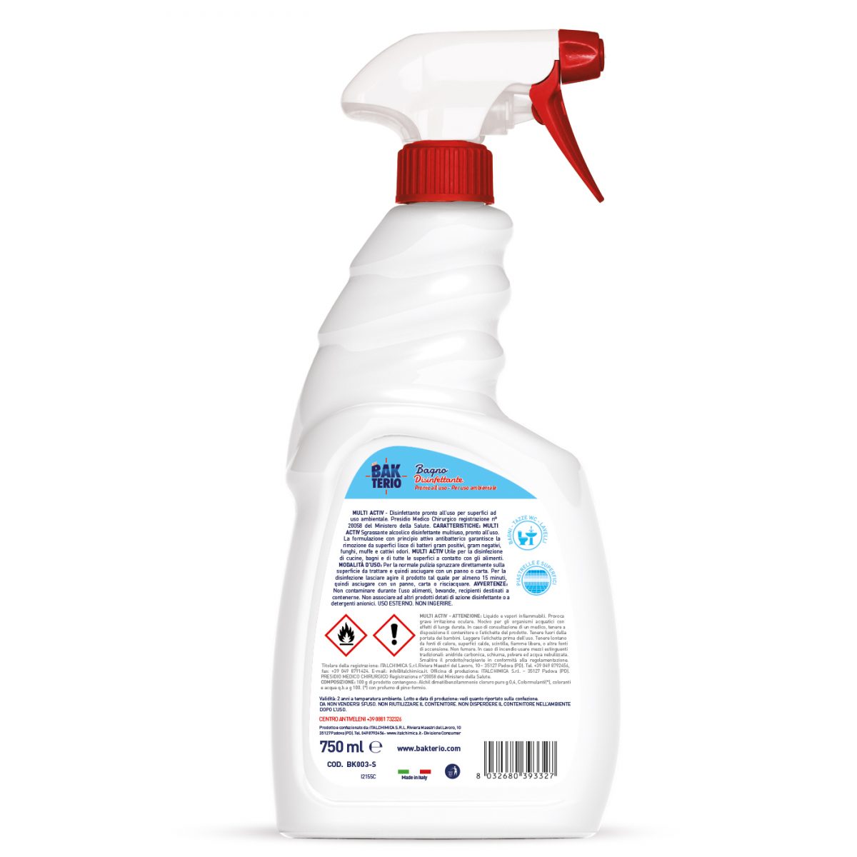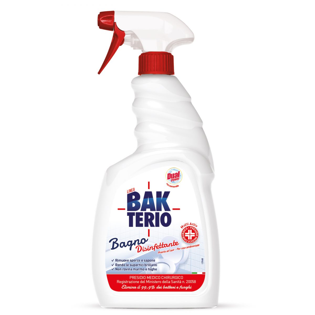 MULTI ACTIV DISINFETTANTE PRESIDIO MEDICO CHIRURGICO Reg. n. 20058. Detergente disinfettante formulato per rimuovere lo sporco quotidiano e i residui di sapone dal tuo bagno. La sua formula non corrosiva è idonea per superfici delicate come il marmo e le fughe. Superfici brillanti e igiene completa.