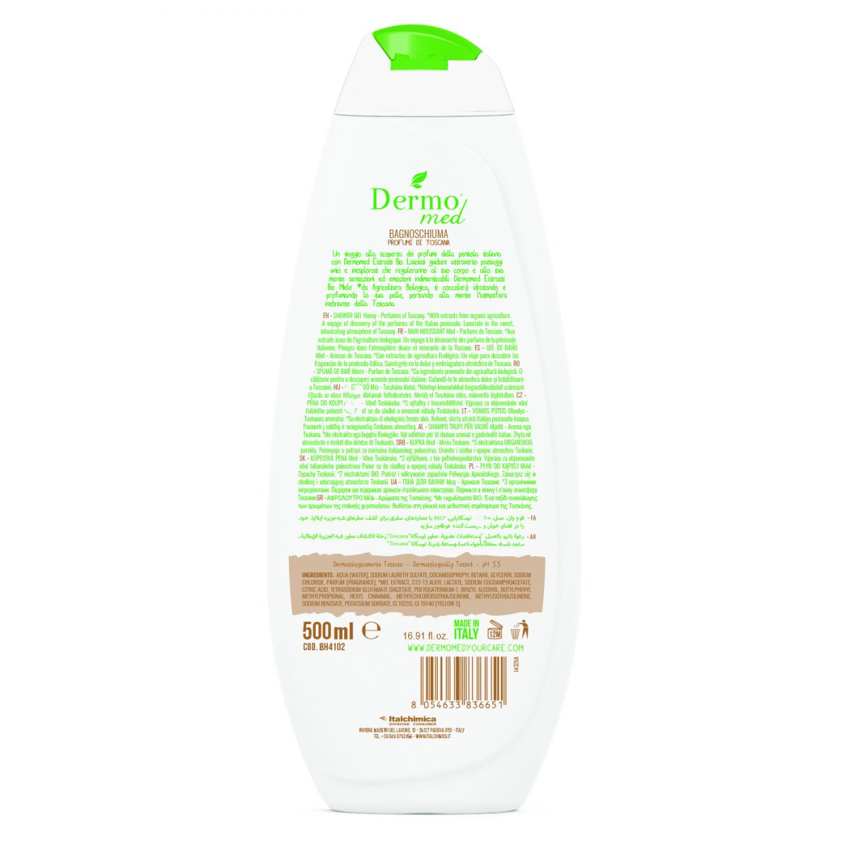 SHOWER GEL Honey - Perfumes of Tuscany. With extracts from organic agriculture. A voyage of discovery of the perfumes of the Italian peninsula. Luxuriate in the sweet, intoxicating atmosphere of Tuscany.