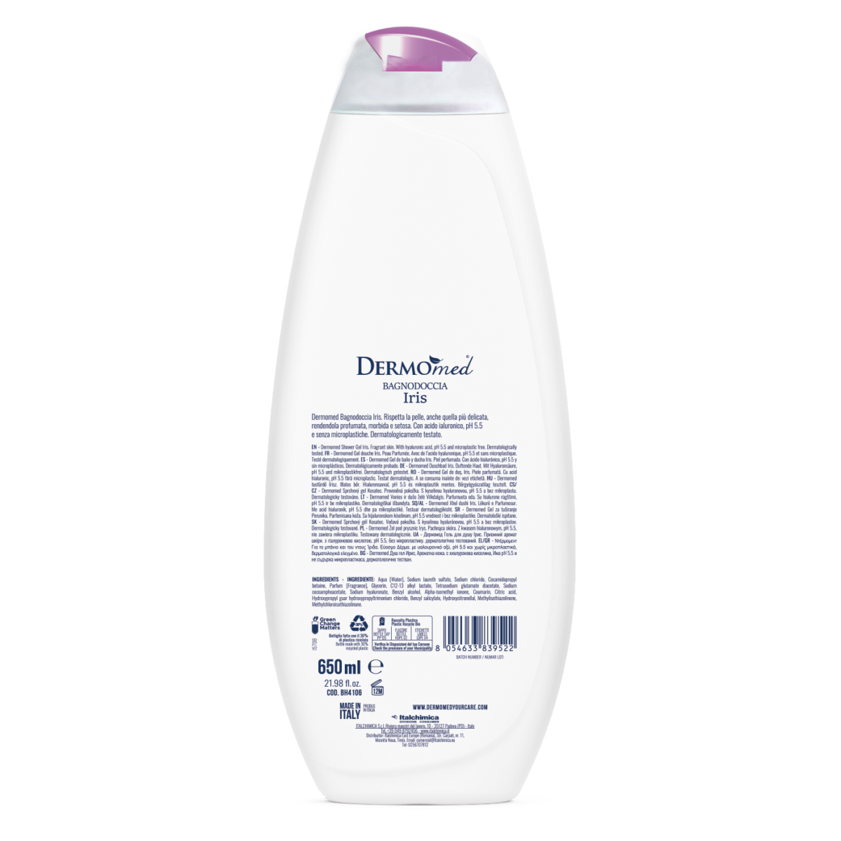 Piele parfumată. Cu acid hialuronic, pH 5.5 fără microplastic. Testat dermatologic.