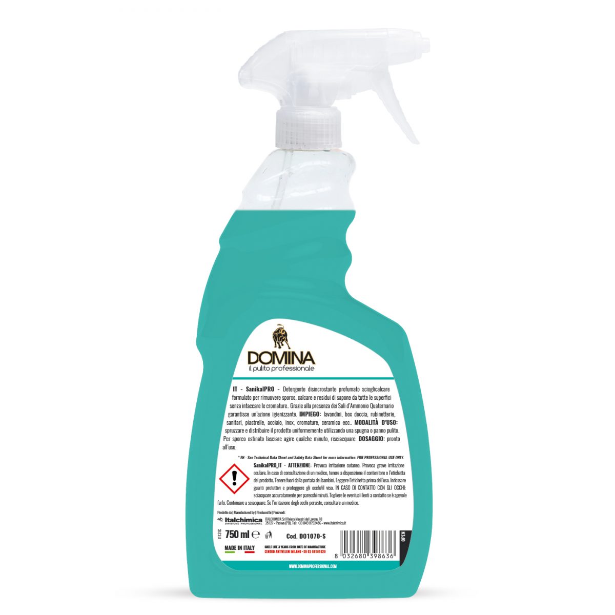 Detergente disincrostante scioglicalcare profumato formulato per rimuovere sporco, calcare e residui di sapone da tutte le superfici senza intaccare le cromature. Grazie alla presenza dei Sali d’Ammonio Quaternario garantisce un’azione igienizzante.