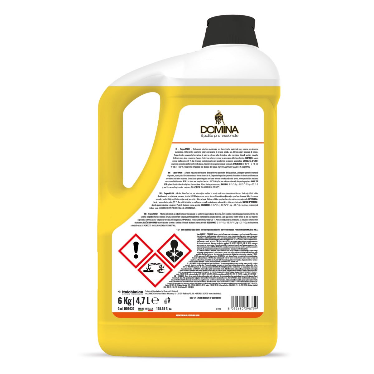 Detergente alcalino igienizzante per lavastoviglie professionali con sistema di dosaggio automatico. Detergente: eccellente potere sgrassante, efficace su grasso, amido, ecc. Elimina odori: essenza di limone. Sequestrante: previene la formazione di aloni e calcare sulle stoviglie e sulla macchina. Splendi Acciaio: stoviglie brillanti senza aloni e macchie d’acqua. Protezione Attiva: previene la corrosione della lavastoviglie.
