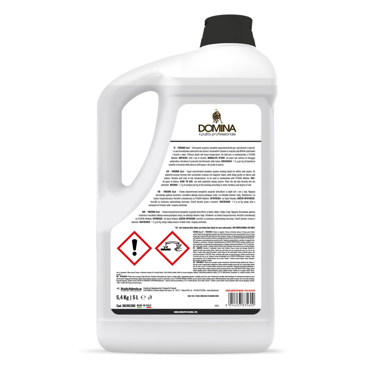 Detergente organico completo superconcentrato per capi bianchi e colorati. La sua formulazione potenziata con enzimi e tensioattivi rimuove le macchie più difficili rispettando i tessuti e colori. Efficace anche alle basse temperature. Da utilizzare in combinazione al prodotto FUSION Alkaline.