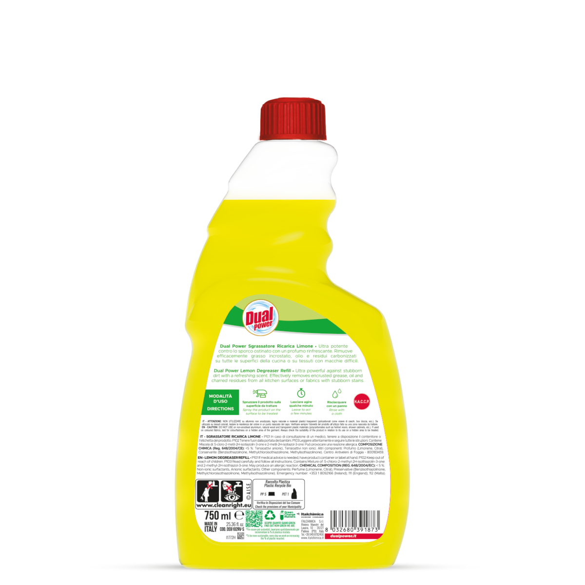 Ultra powerful against stubborn dirt with a refreshing scent. Effectively removes encrusted grease, oil and charred residues from all kitchen surfaces or fabrics with stubborn stains.