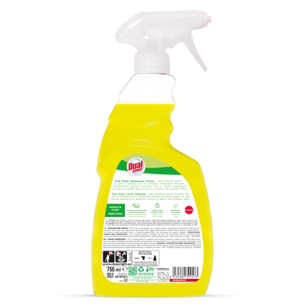 Ultra powerful against stubborn dirt with a refreshing scent. Effectively removes encrusted grease, oil and charred residues from all kitchen surfaces or fabrics with stubborn stains.