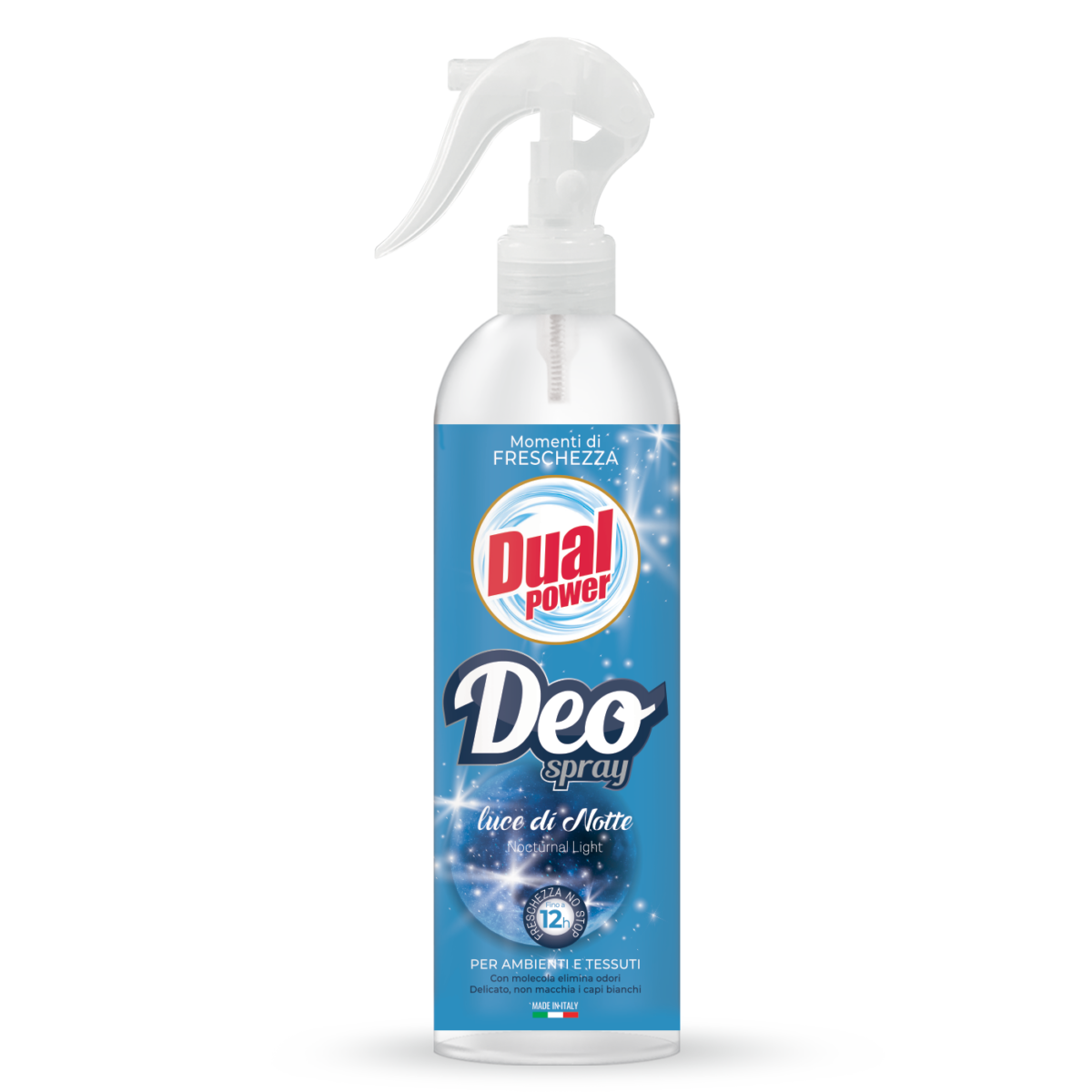 Dual Power Deo spray is the innovative room and fabric deodorising spray that leaves long-lasting fragrance without staining, even on white fabrics.
