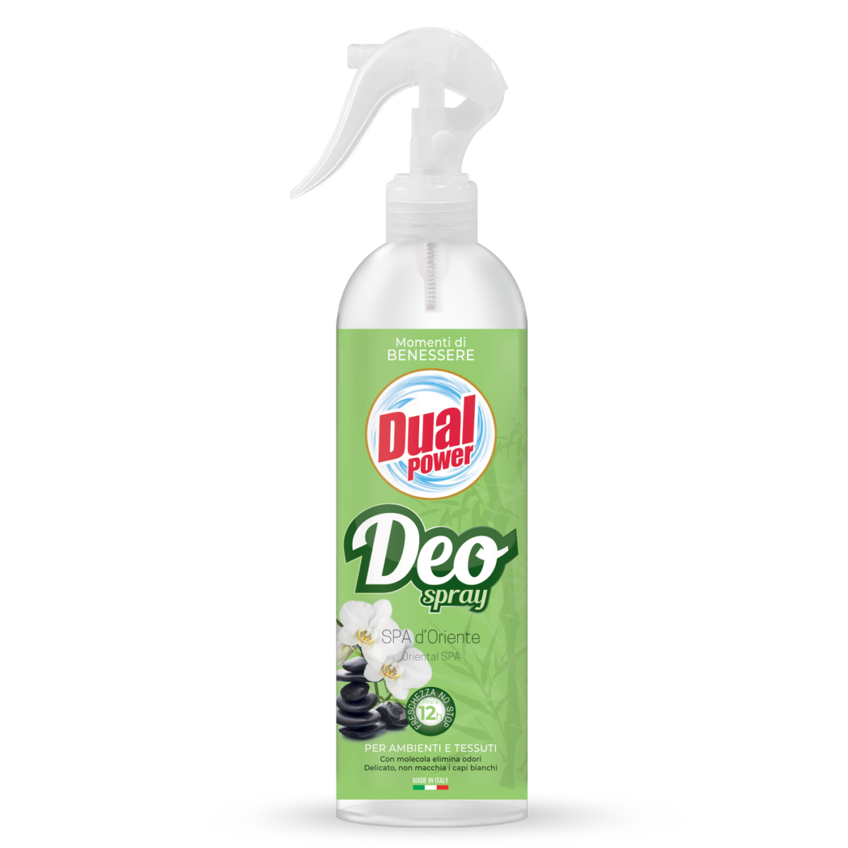 Dual Power Deo spray is the innovative room and fabric deodorising spray that leaves long-lasting fragrance without staining, even on white fabrics.