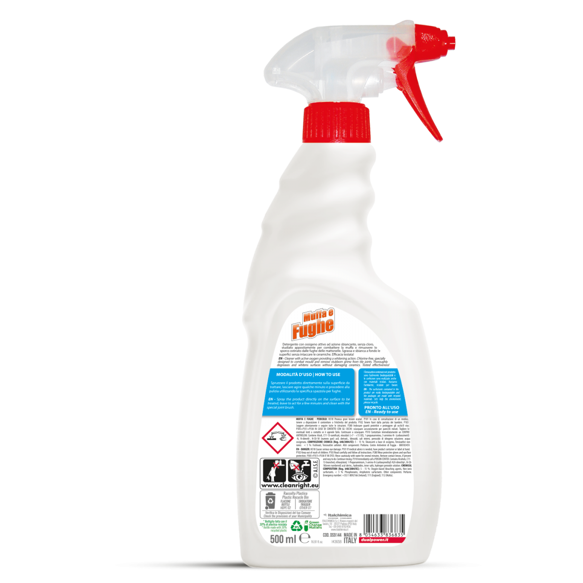 Detergent with active oxygen for whitening action, chlorine free, designed specifically to combat mould and remove stubborn grime from tile grouting. Thoroughly degreases and whitens surfaces without damaging ceramics. Tested efficiency!