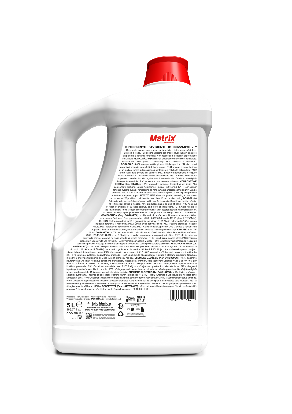 HOW TO USE: dilute the product according to recommended doses. Use with mop or no-foam scrubber-dryer. No need to rinse. DOSING: 0.3-1% in water. ½ - 1 cap per 5 litres of water.