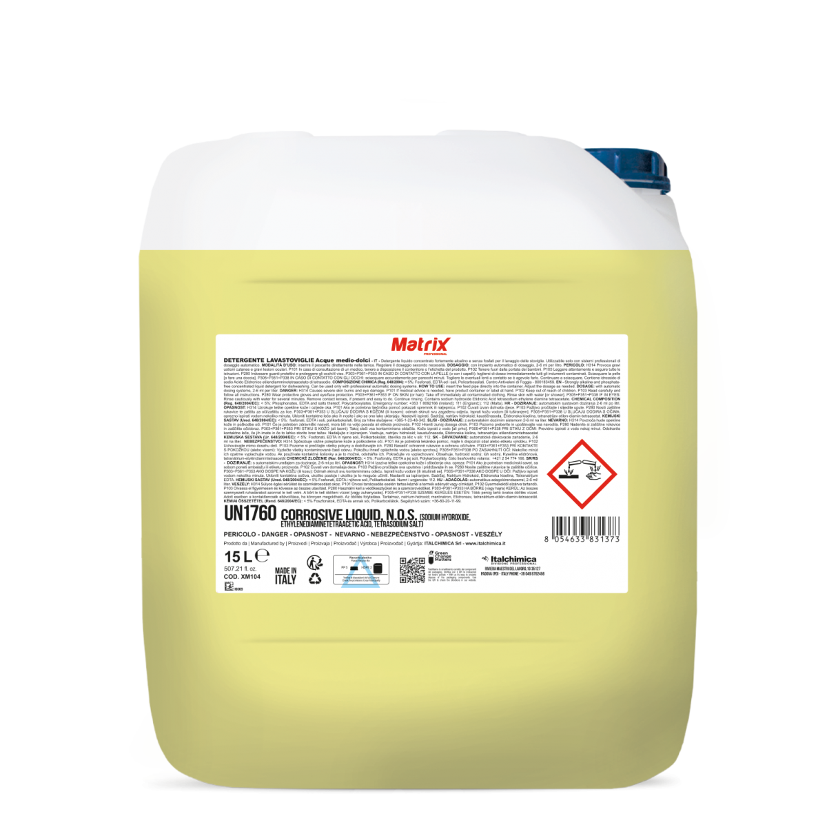 Detergent lichid concentrat, puternic alcalin, fără fosfaţi; formulă specială pentru spălarea vaselor cu ajutorul instalaţiilor automate profesionale dotate cu sistem de dozare. Ideal pentru apă cu orice nivel de duritate.