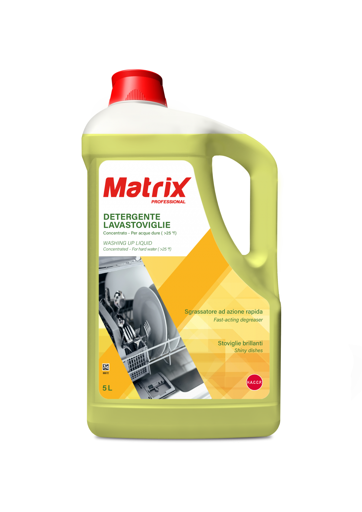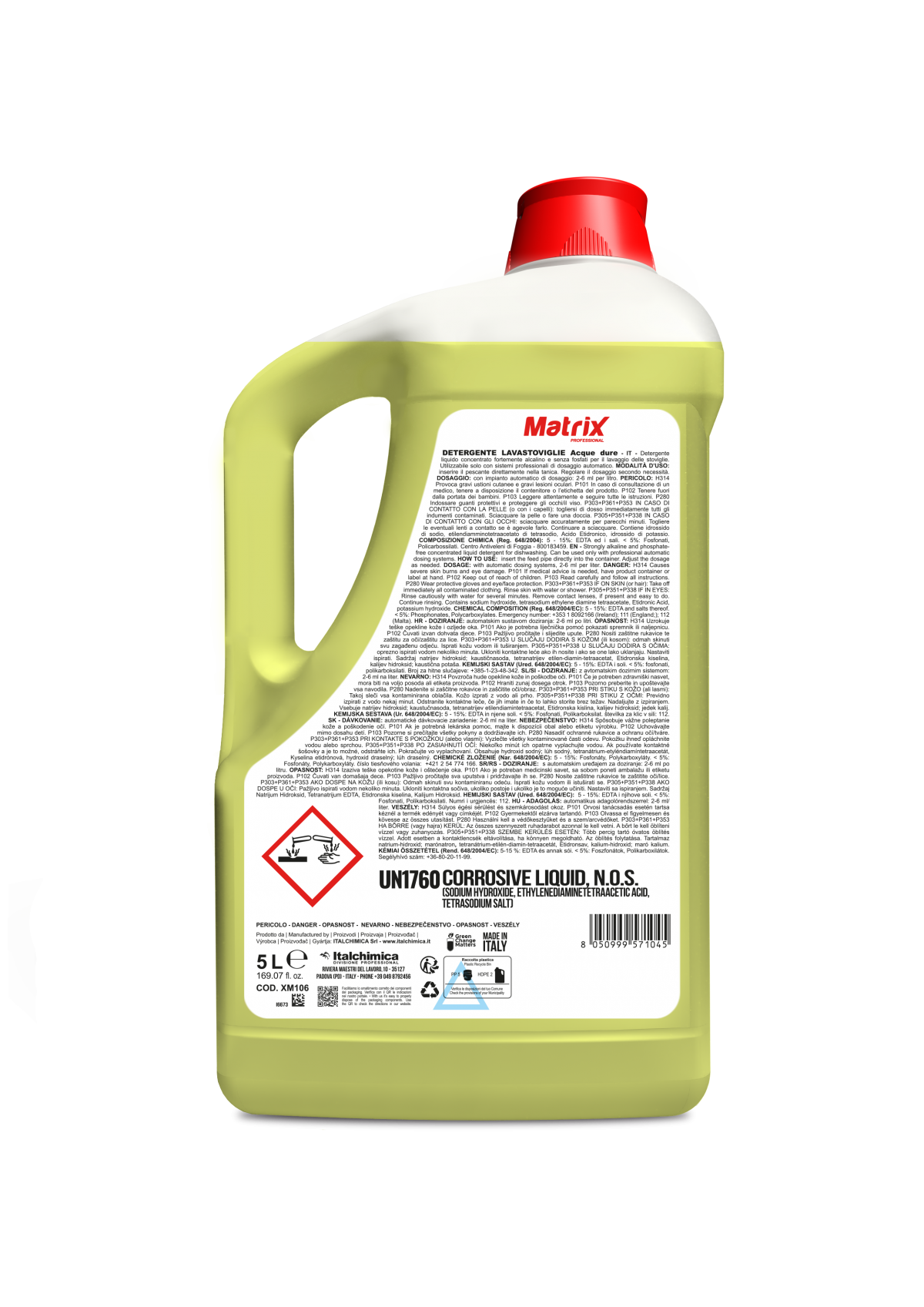 Detergente liquido concentrato fortemente alcalino e senza fosfati per il lavaggio delle stoviglie. Utilizzabile solo con sistemi professionali di dosaggio automatico.