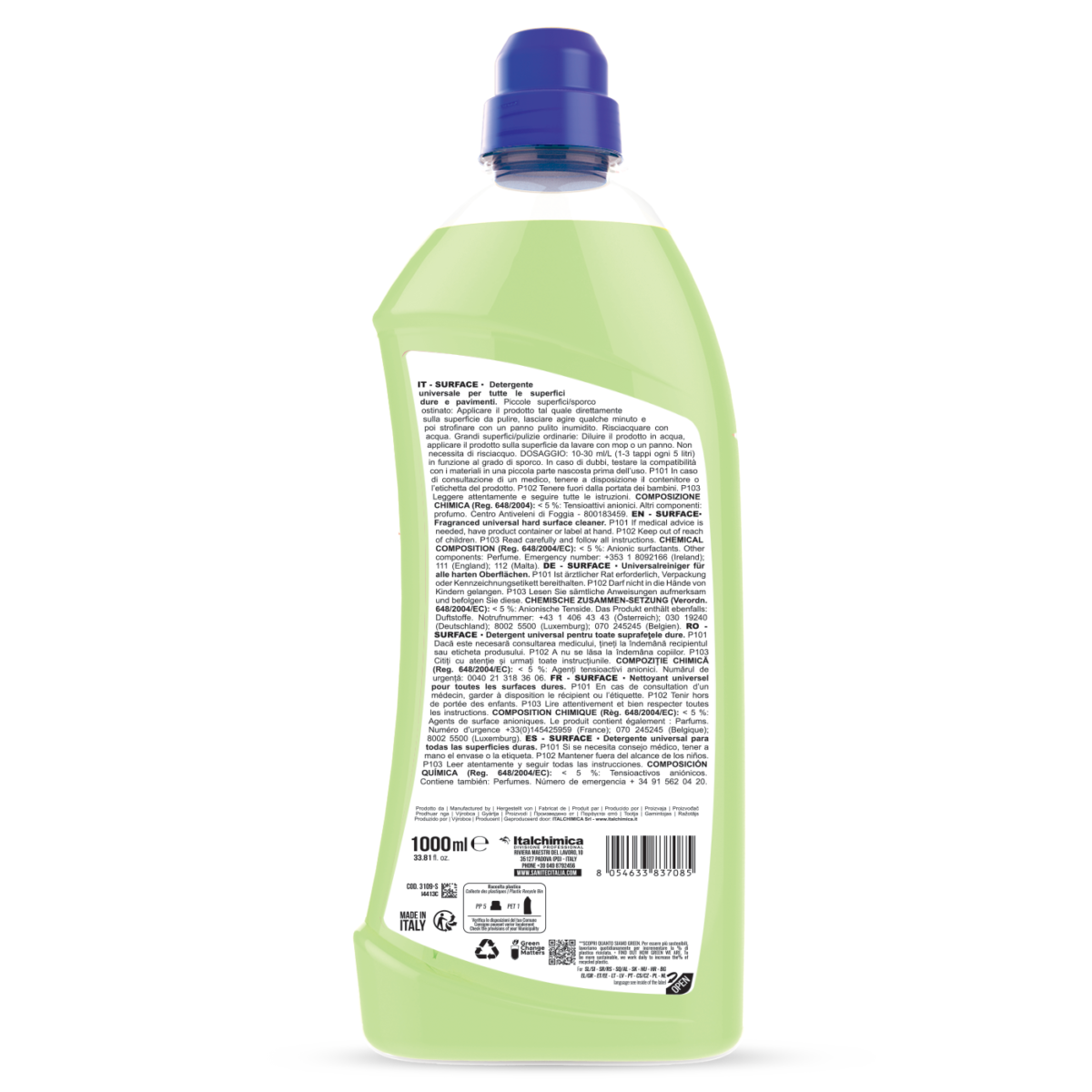 Suprafeţe mici/murdărie încăpăţânată: Turnaţi produsul nediluat direct pe suprafaţa de curăţat, lăsaţi să acţioneze câteva minute şi frecaţi cu o lavetă curată umedă. Clătiți cu apă. Suprafeţe mari/curăţare obişnuită: Diluaţi produsul în apă, aplicaţi pe suprafaţa de spălat cu mopul sau cu o cârpă. Nu necesită clătire. DOZARE: 10-30 ml/L (1-3 capace la 5 litri), în funcţie de gradul de murdărie.