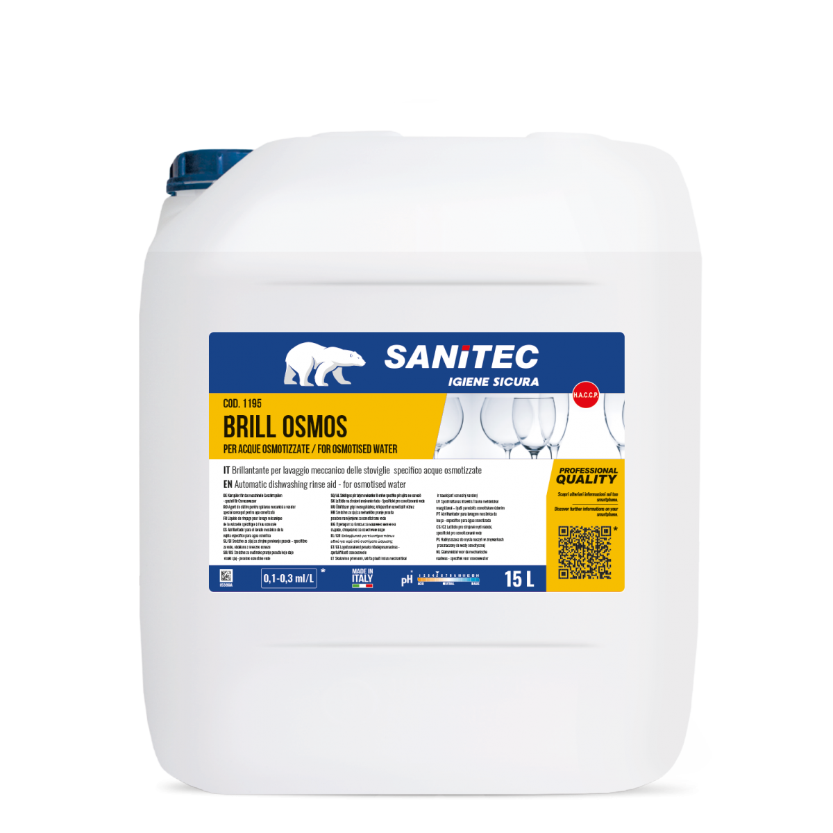 Brillantante per lavaggio meccanico delle stoviglie specifico acque osmotizzate