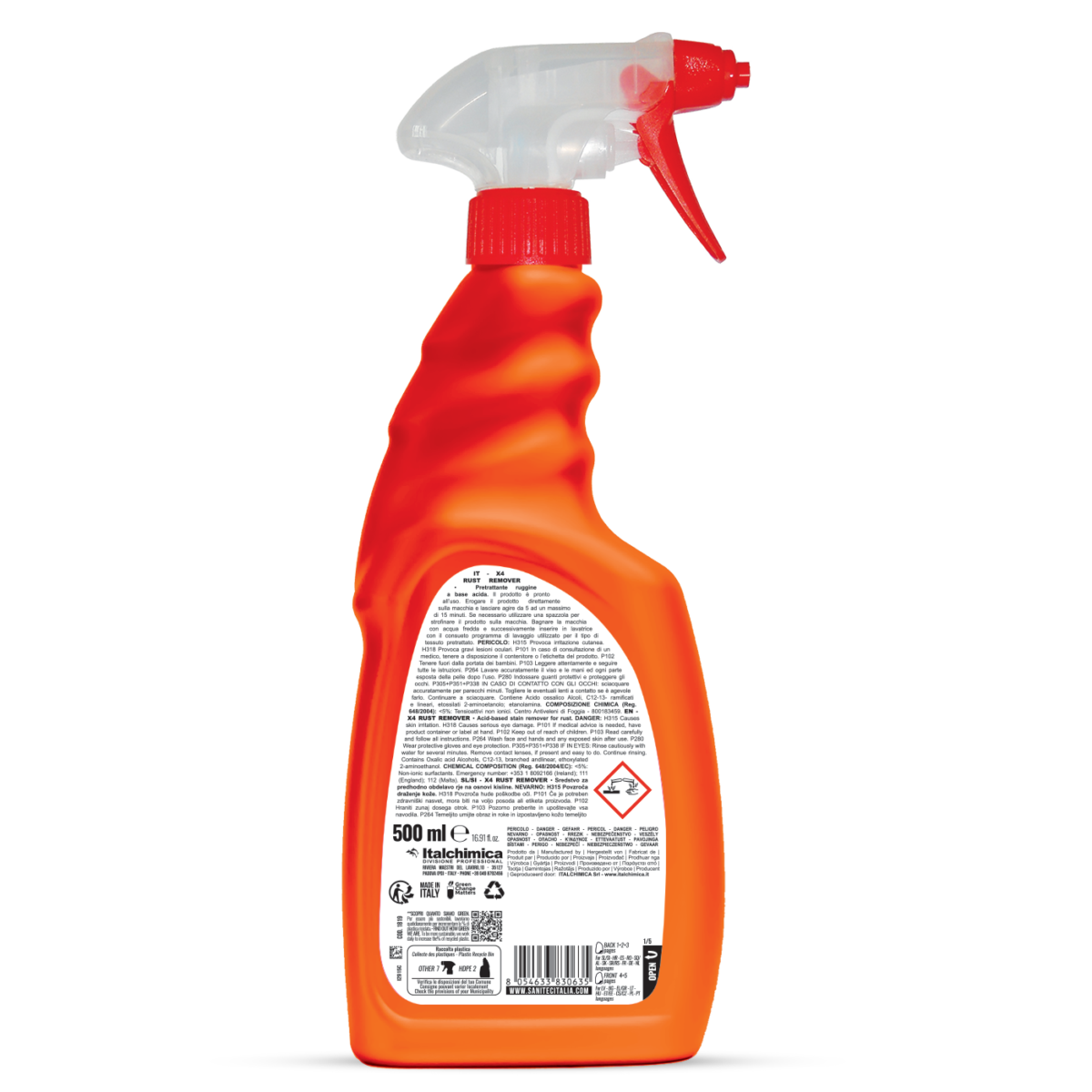 • Altamente efficace sulle macchie quali ruggine, ossidi minerali, residui di cemento, verderame etc