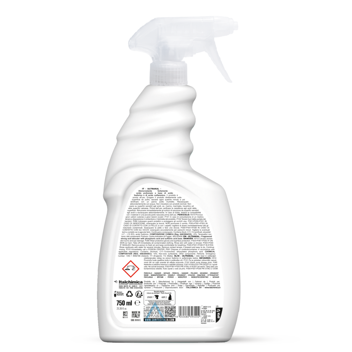 • Scioglie efficacemente lei incrostazioni di calcare e minerali da lavandini, box doccia, rubinetterie, sanitari, piastrelle, ecc